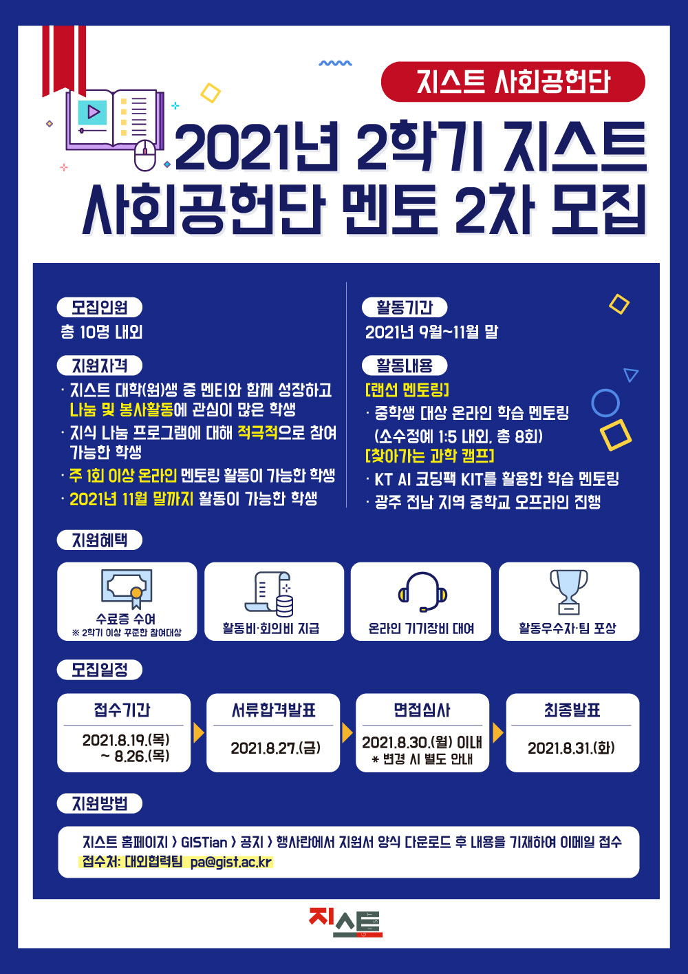 1. 모집 및 접수기간: 2021.8.19.(목) ~ 8.26.(목) 24시 마감