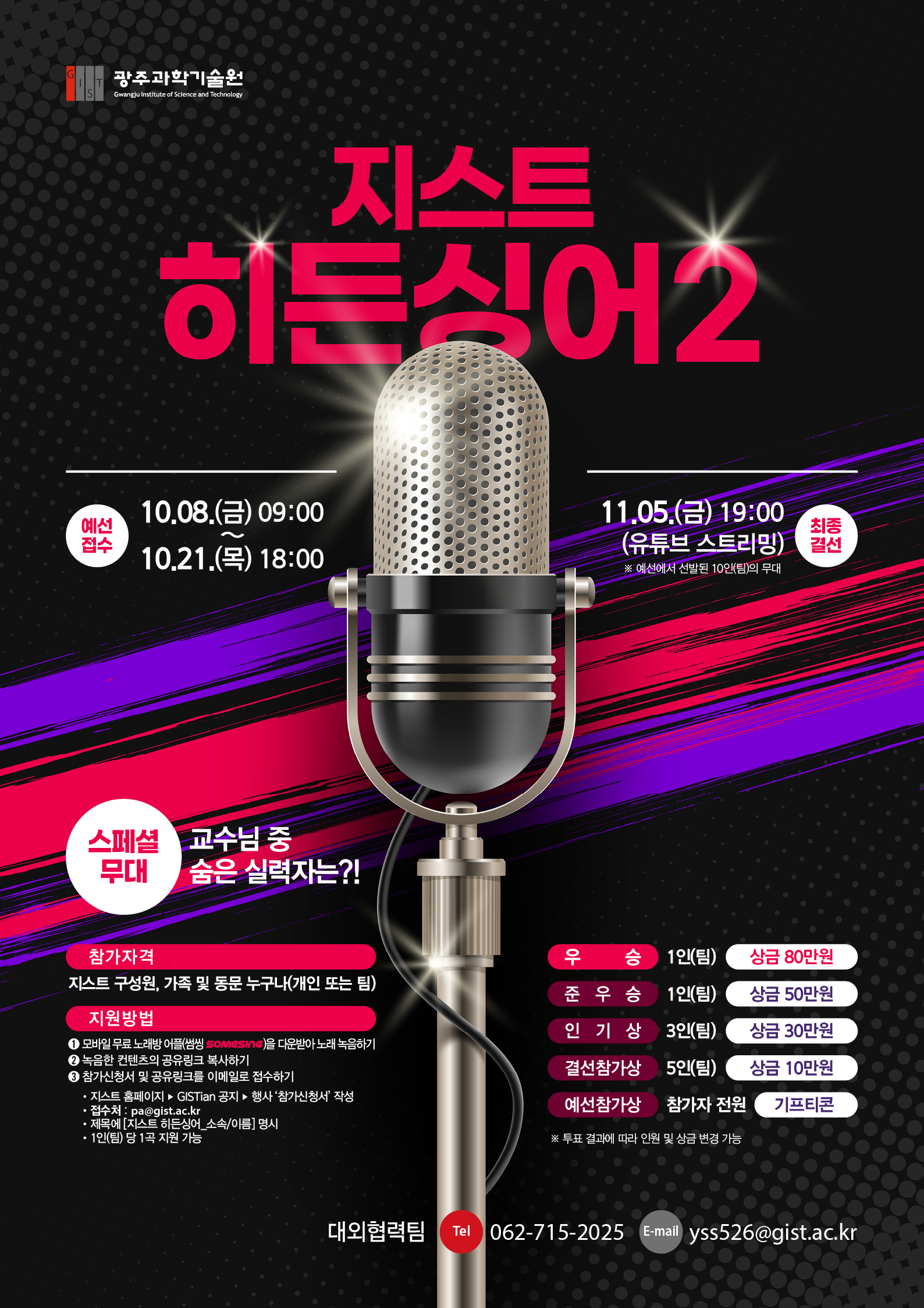 - 문의처: 대외협력팀 Tel. 062-715-2025 E-mail. yss526@gist.ac.kr