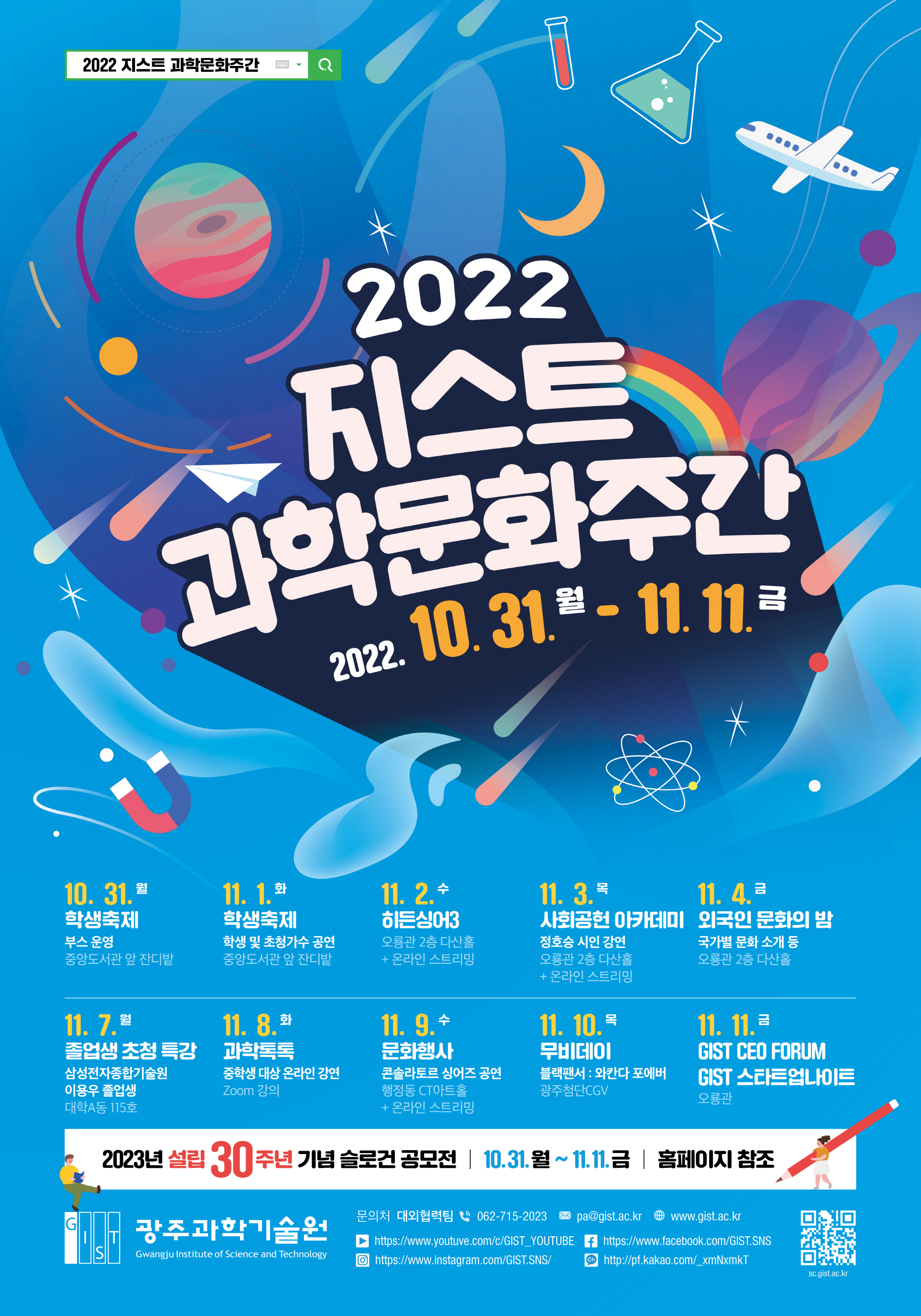 2022 지스트 과학문화주간(2022.10.31.(월)~11.11.(금)) 개최를 안내해 드립니다!