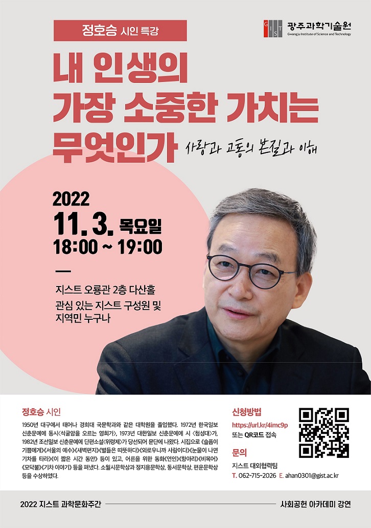 - 장 소: 지스트 오룡관 2층 다산홀 (※유튜브 실시간 중계 동시 진행)
