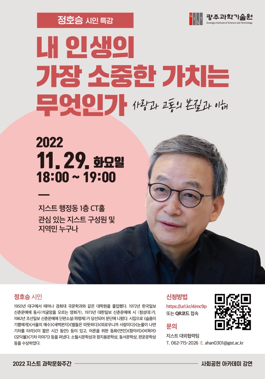 - 문의처: 대외협력팀 062-715-2026 / ahan0301@gist.ac.kr