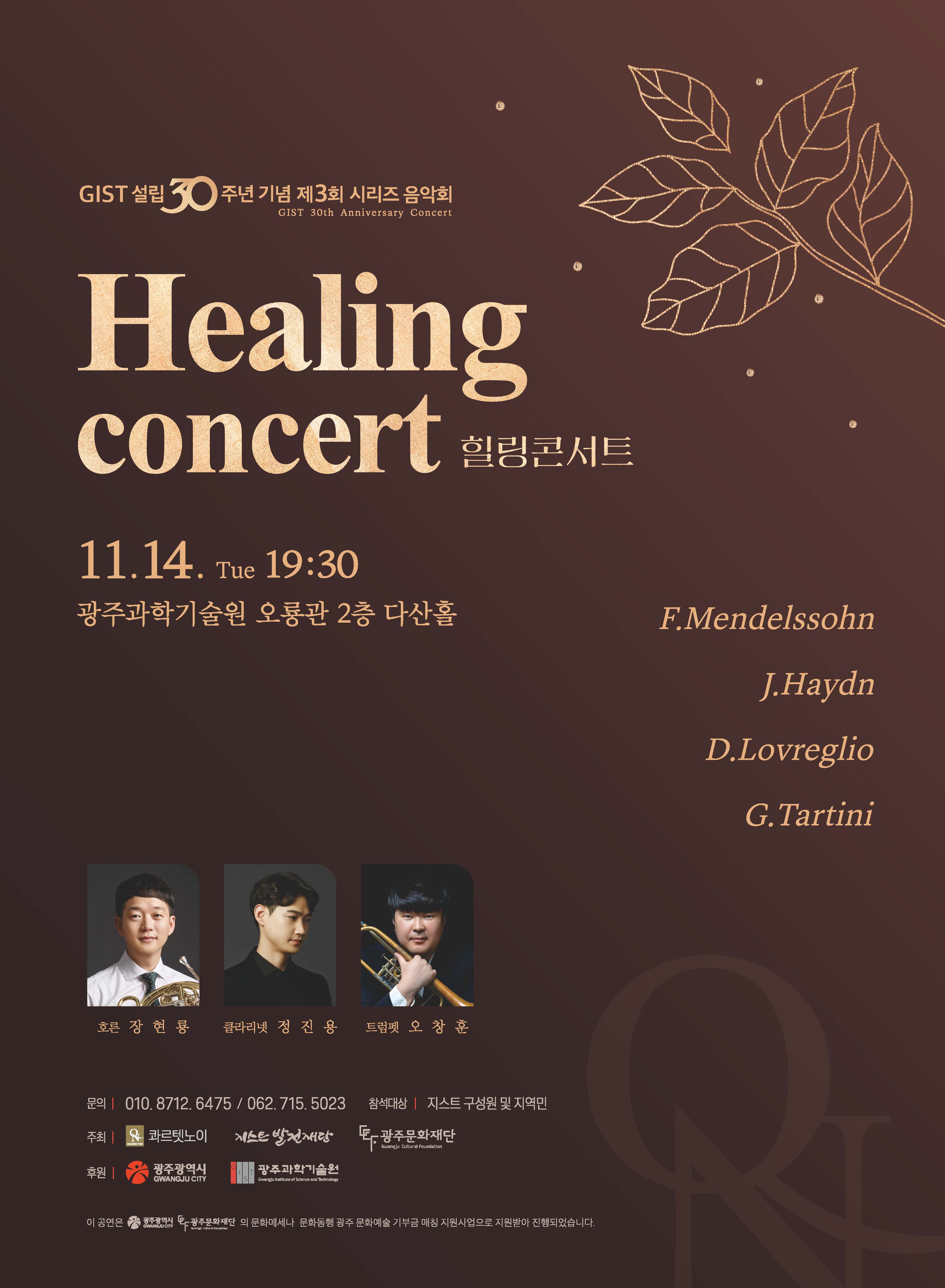지스트 설립 30주년 기념 [ 지역민과 함께 하는 음악회 "Healing concert" ] 가 개최됩니다!!