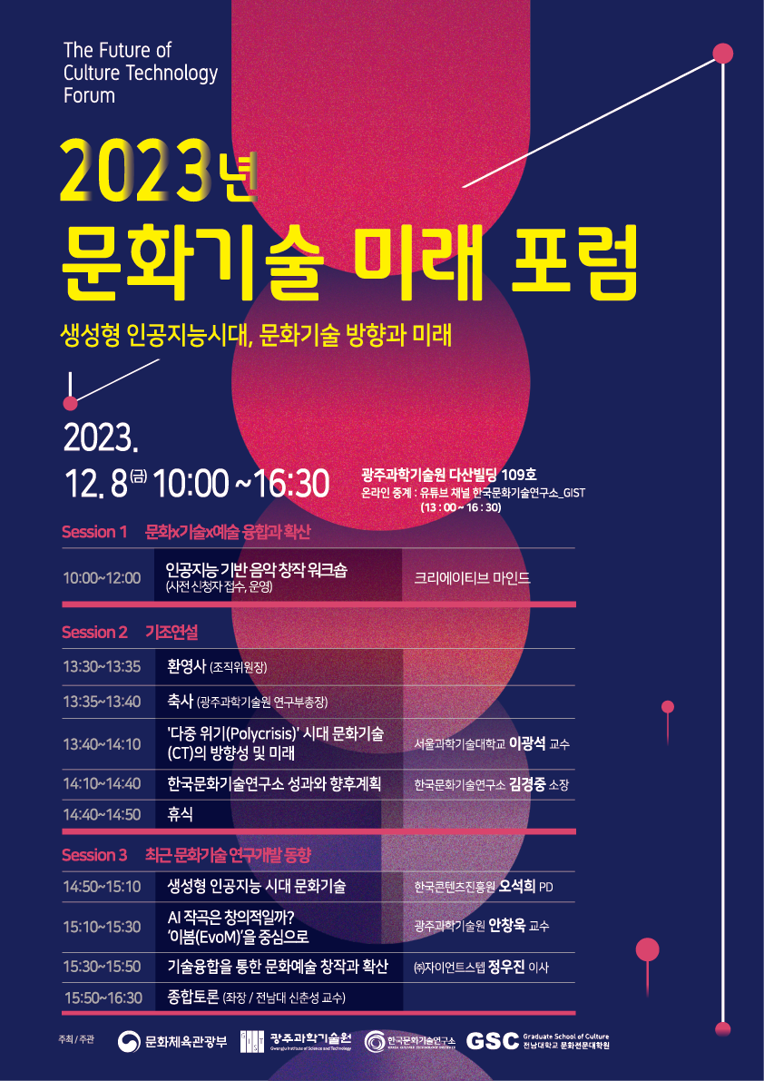 - 주최/주관 : 문화체육관광부/광주과학기술원 한국문화기술연구소, 전남대학교 문화전문대학원