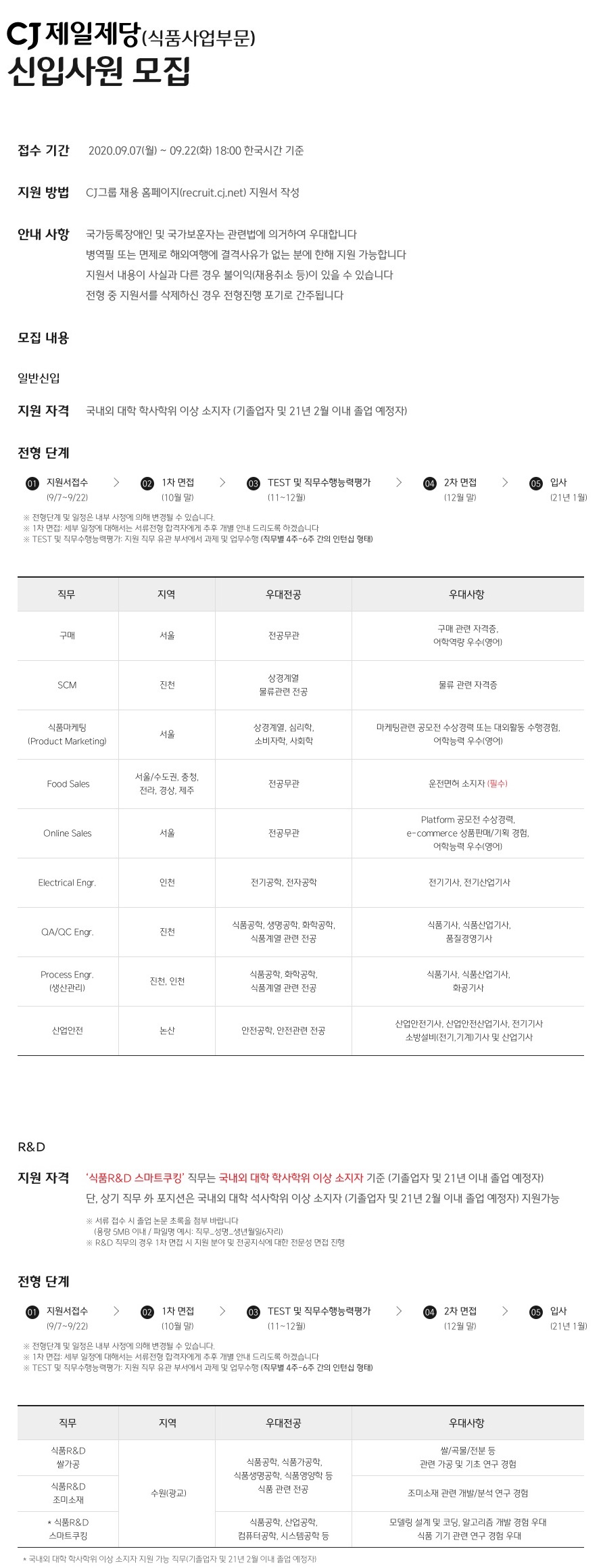 2) 식품사업부문 접수 링크: http://recruit.cj.net/recruit/ko/recruit/recruit/detail.fo?zz_jo_num=5875
