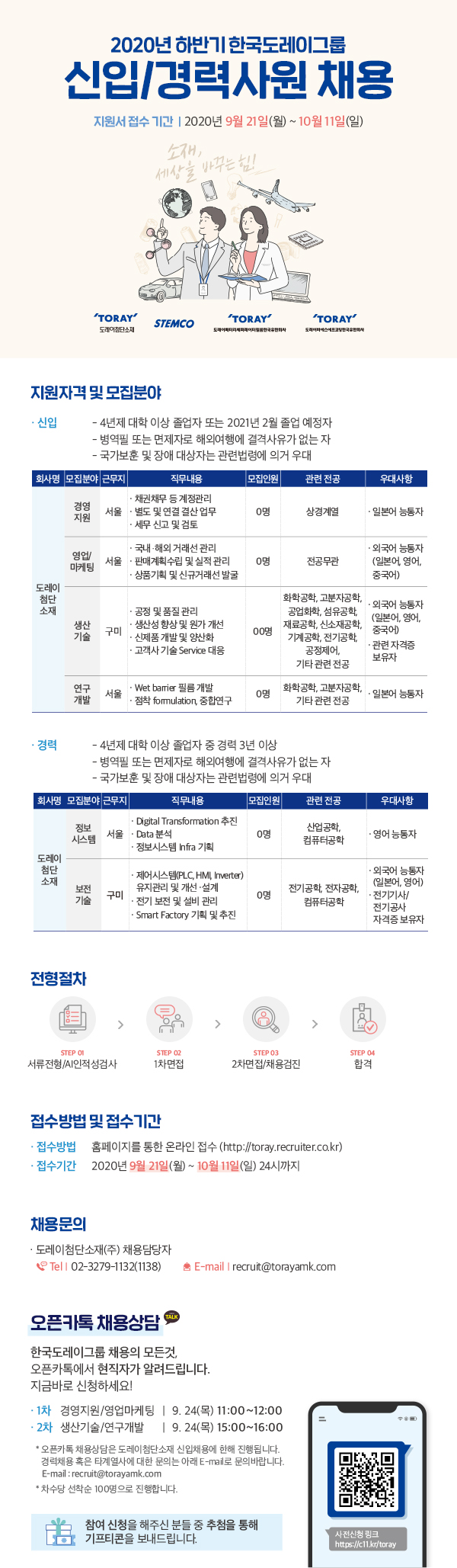 *오픈카톡 채용상담은 도레이첨단소재 신입채용에 한해 진행됩니다.