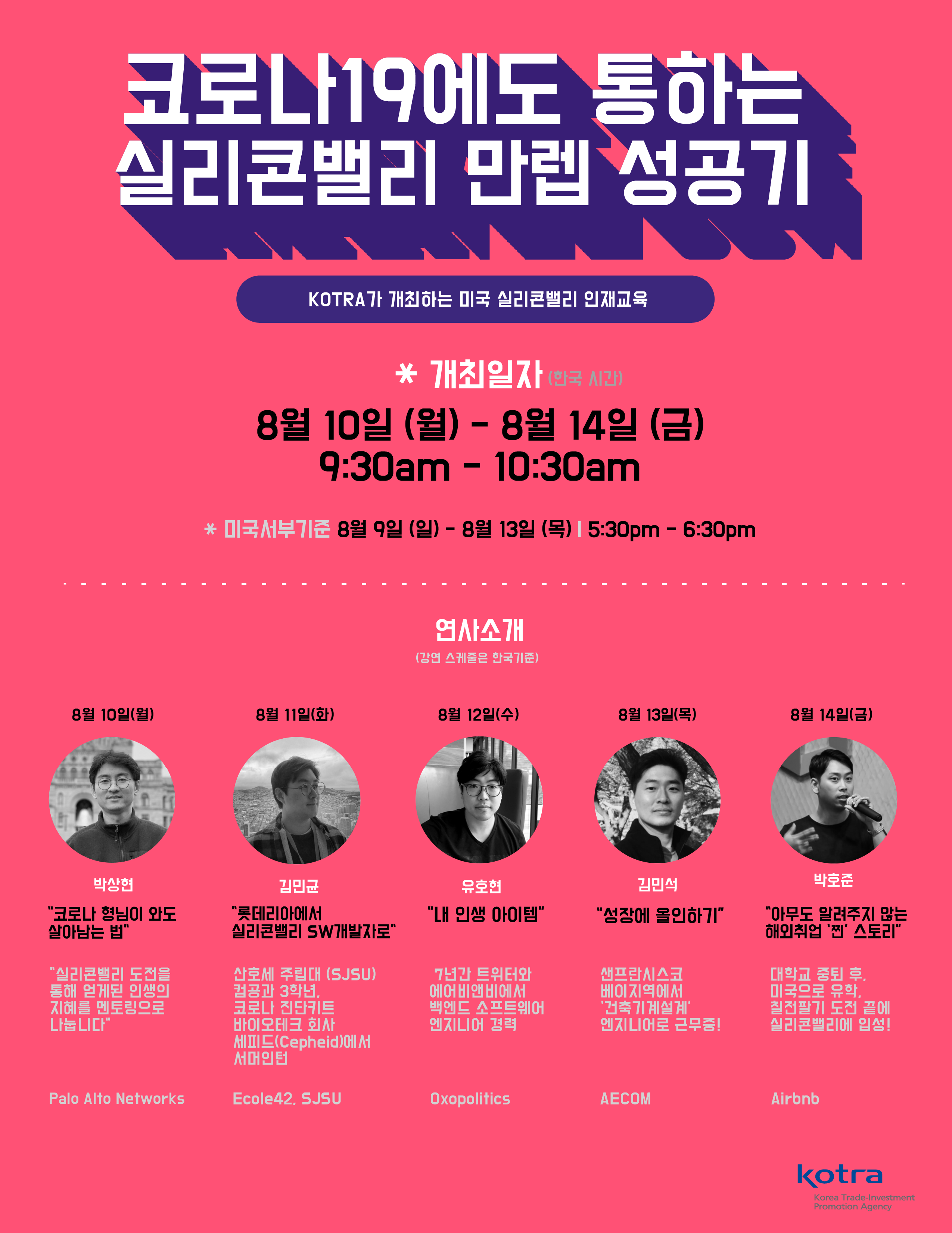 ⇒ 코로나19로 위축된 청년들에게 실리콘밸리 현장의 목소리를 들려주는 행사필요