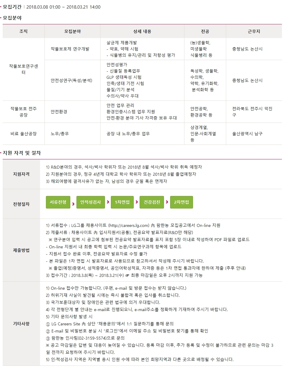 2018 상반기 LG팜한농 신입공채(~3.21)