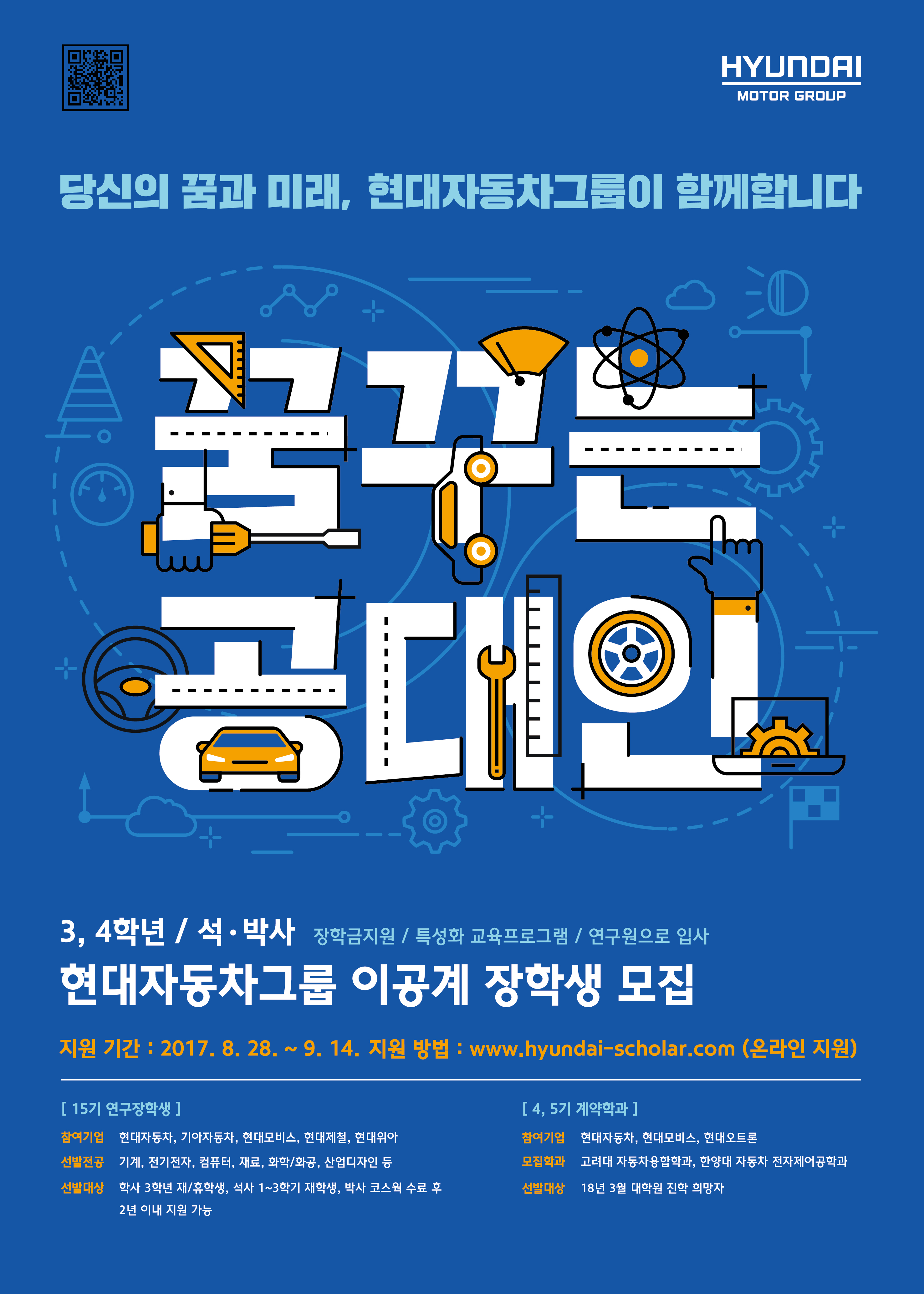 - '17. 8/28(월) ∼ 9/14(목)까지 www.hyundai-scholar.com 으로 온라인 지원