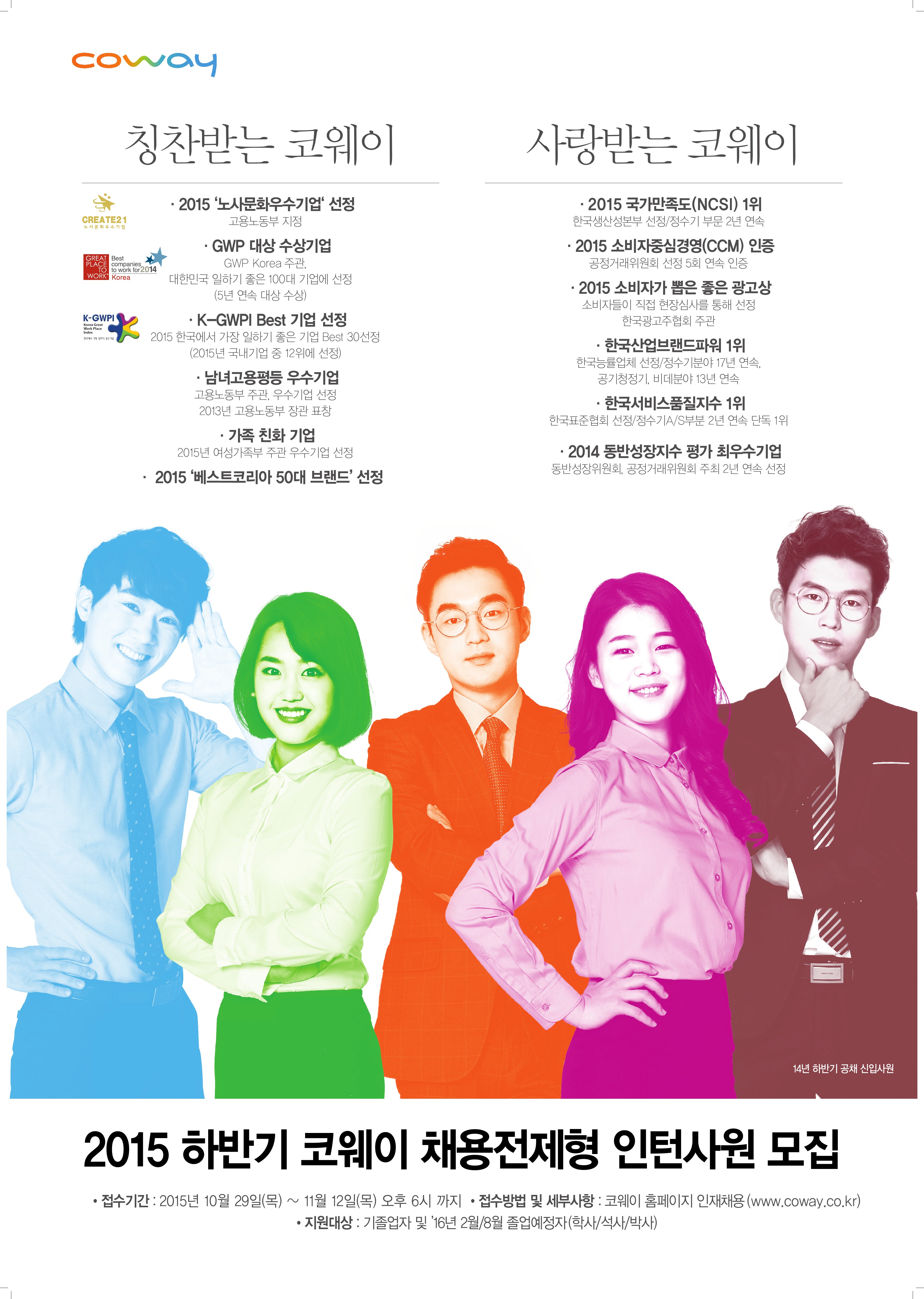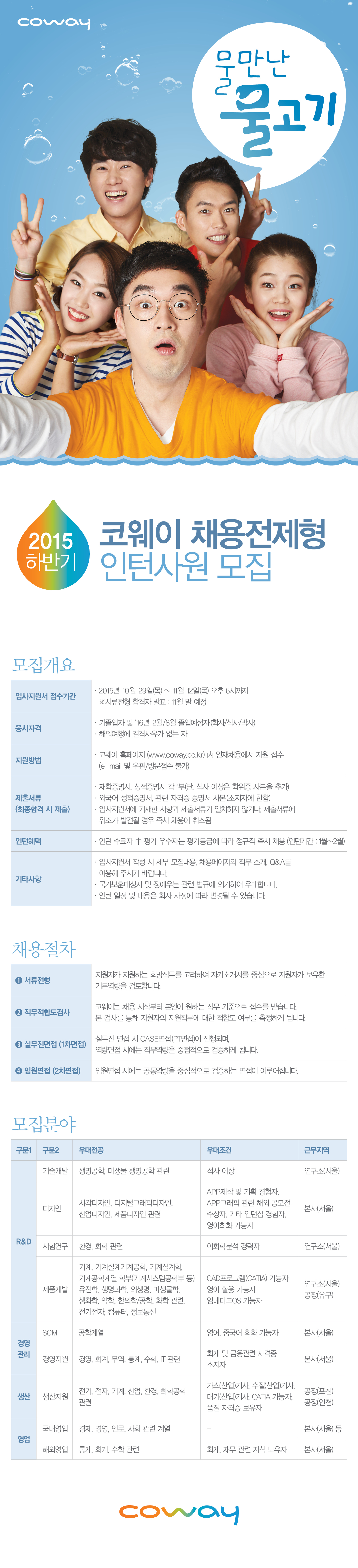 코웨이2015 하반기 채용전제형 인턴사원 모집 안내.