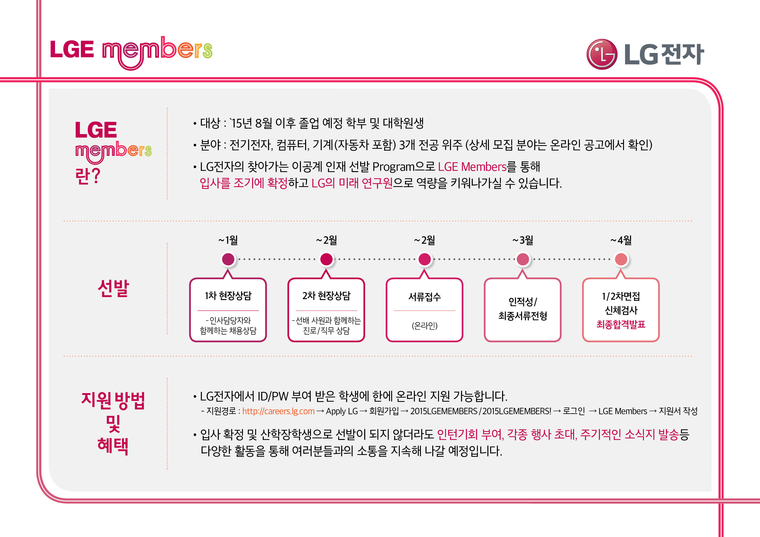 지원방법 : LG전자에서 ID/PW 부여 받은 학생에 한에 온라인 지원 가능합니다.