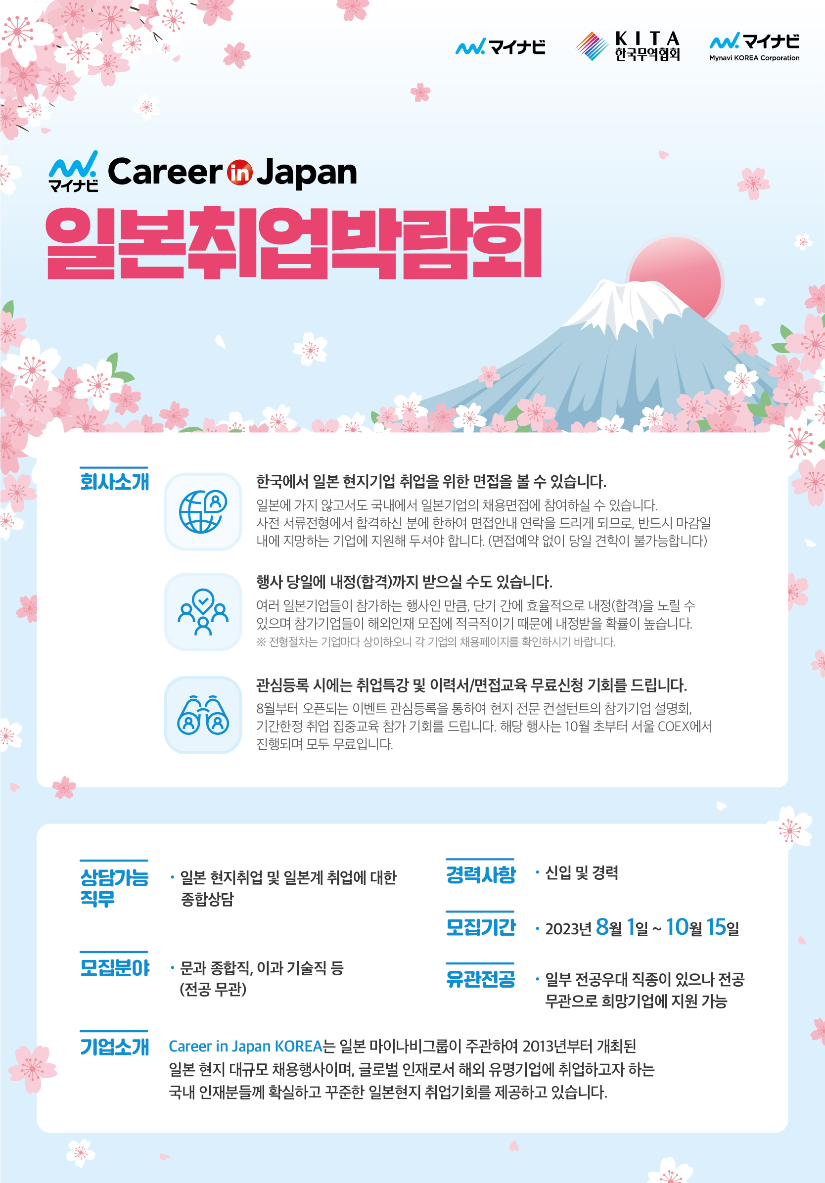 Career in Japan KOREA는 일본 마이나비그룹이 주관하여 2013년부터 개최된