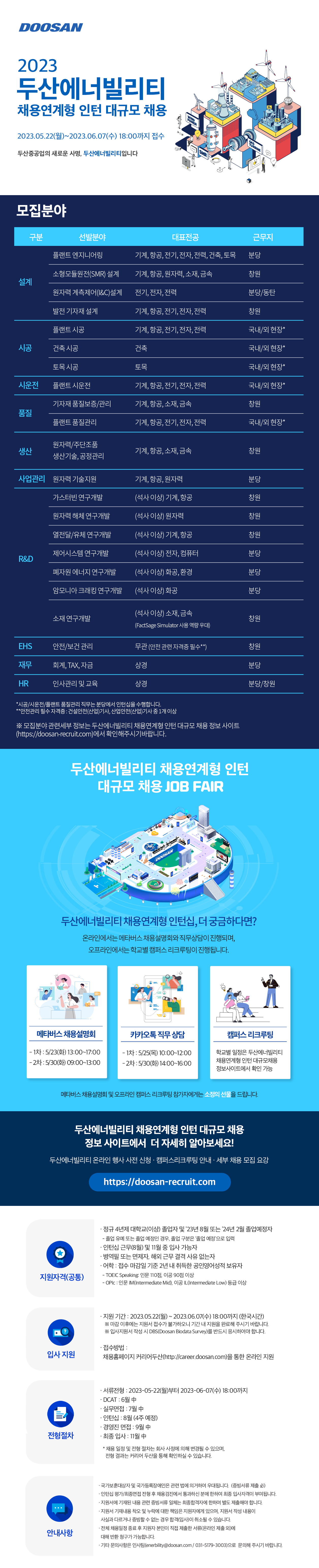 두산에너빌리티 온라인 행사 사전 신청 · 캠퍼스리크루팅 안내 · 세부 채용모집 요강