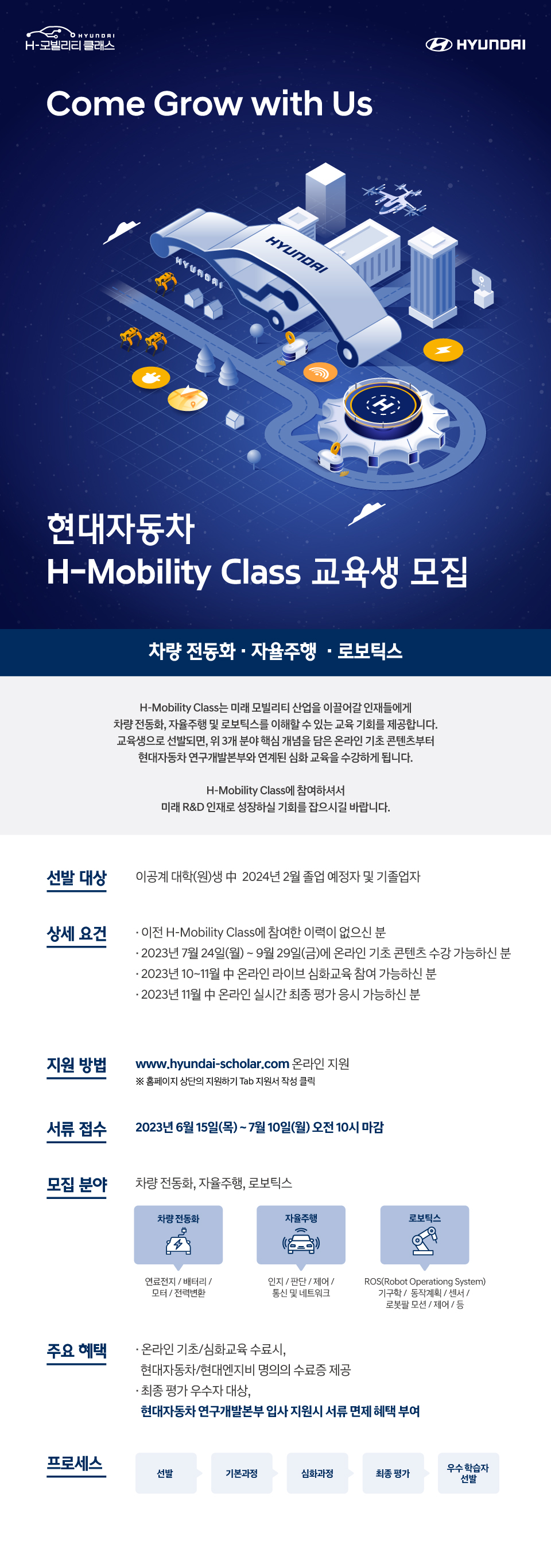 H-Mobility Class에 참여하셔서 미래 R&D 인재로 성장하실 기회를 잡으시길 바랍니다.