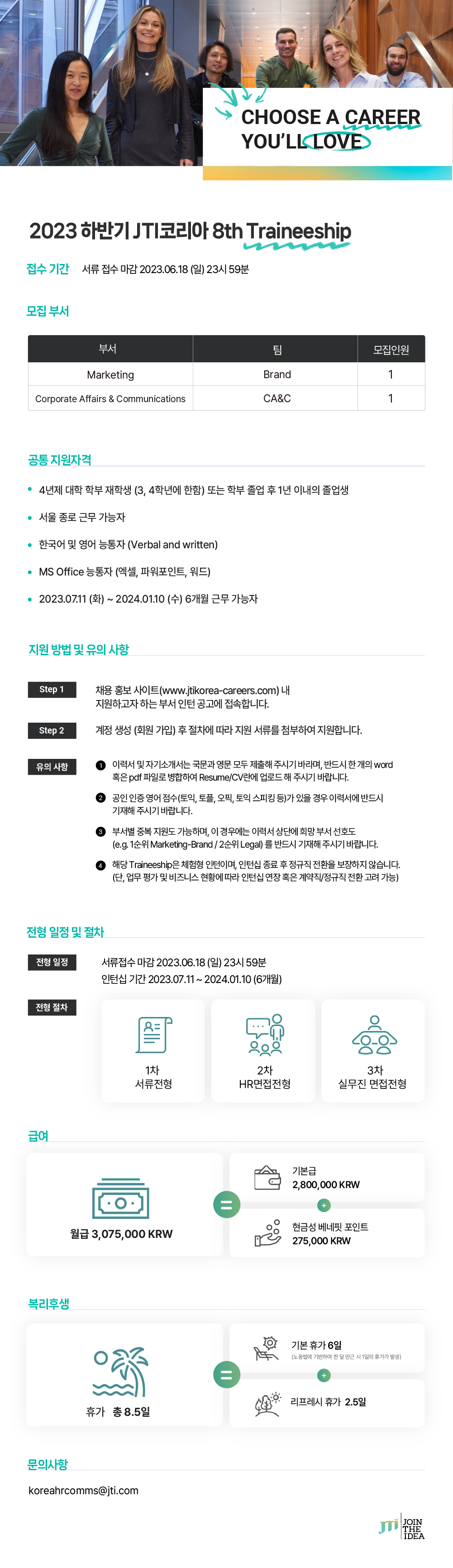 [ 2023 하반기 JTI코리아 8th Traineeship - 6/18 23:59 ]