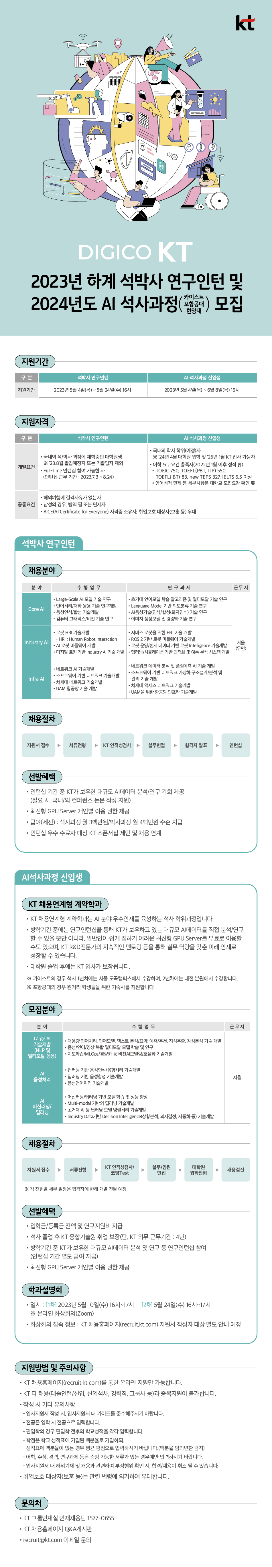 ㆍ인턴십 기간 중 KT가 보유한 대규모 AI데이터 분석/연구 기회 제공