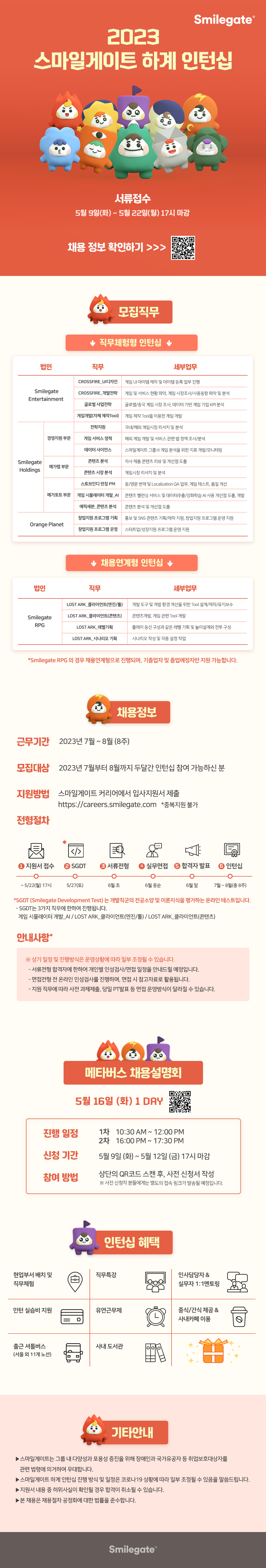 2023 스마일게이트 하계 인턴십 소개를 위해 메타버스 직무설명회를 5월 16일 진행합니다.