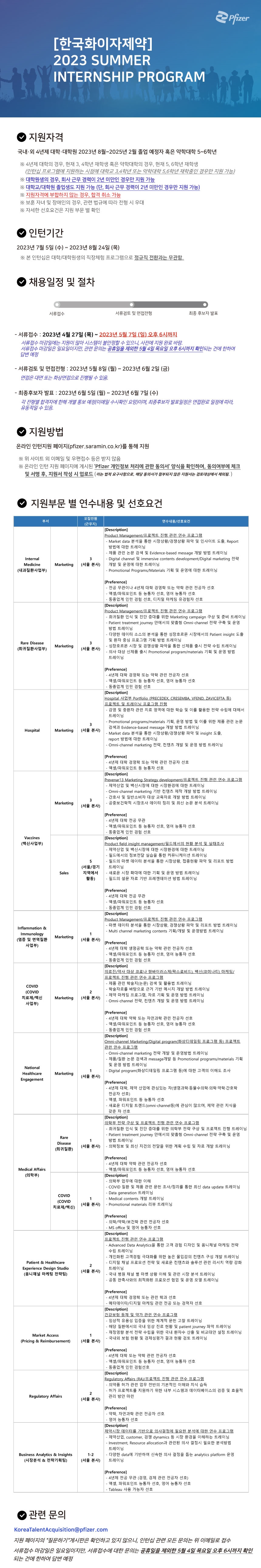 개요 : [한국화이자제약] 2023 Summer Internship Program