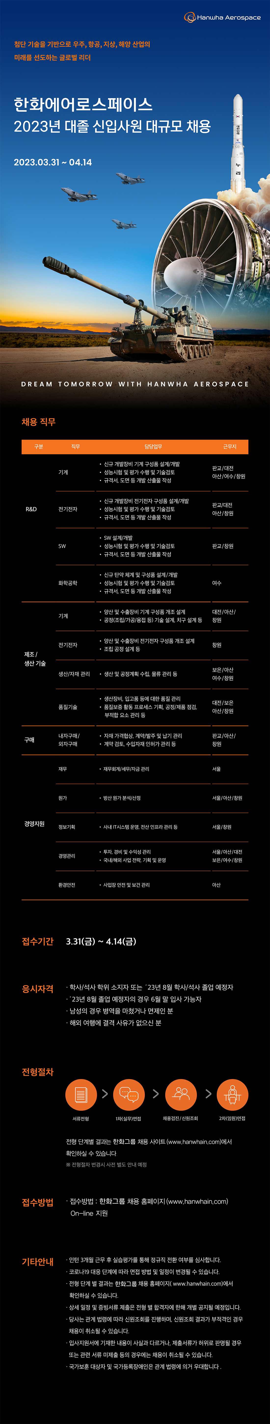 [한화에어로스페이스] 2023 대졸 신입사원 대규모 채용
