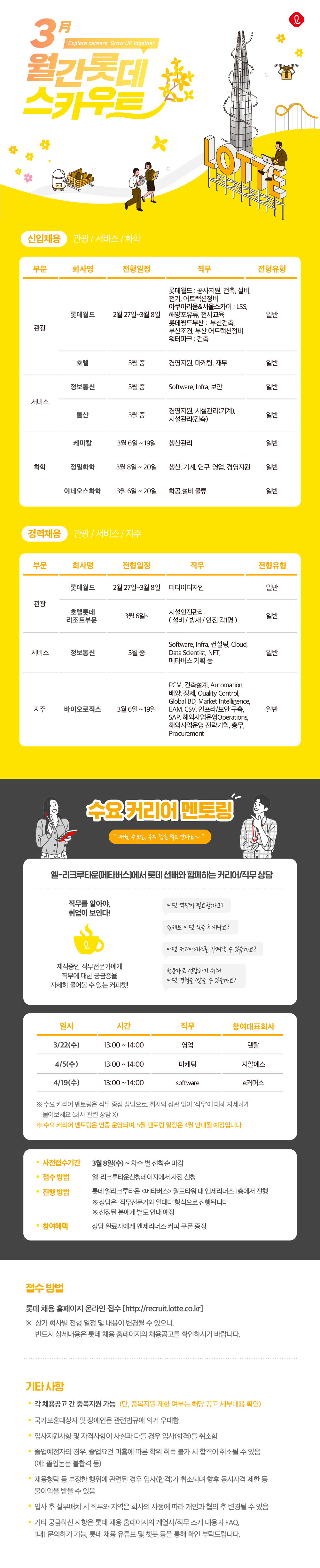 3월 롯데채용 및 수요 커리어 멘토링 프로그램 자세히 보기 (하단 링크 클릭)