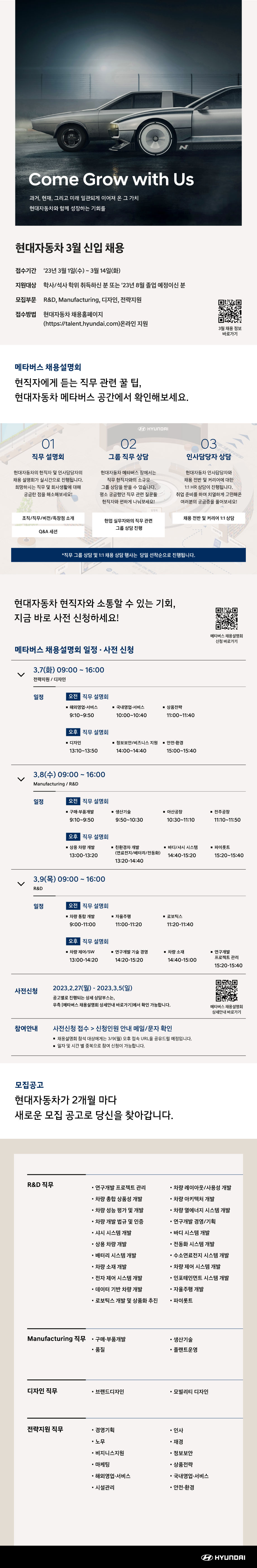 - 채용설명회 참석 대상에게는 3/9(월) 오후 접속 URL을 공유드릴 예정입니다.