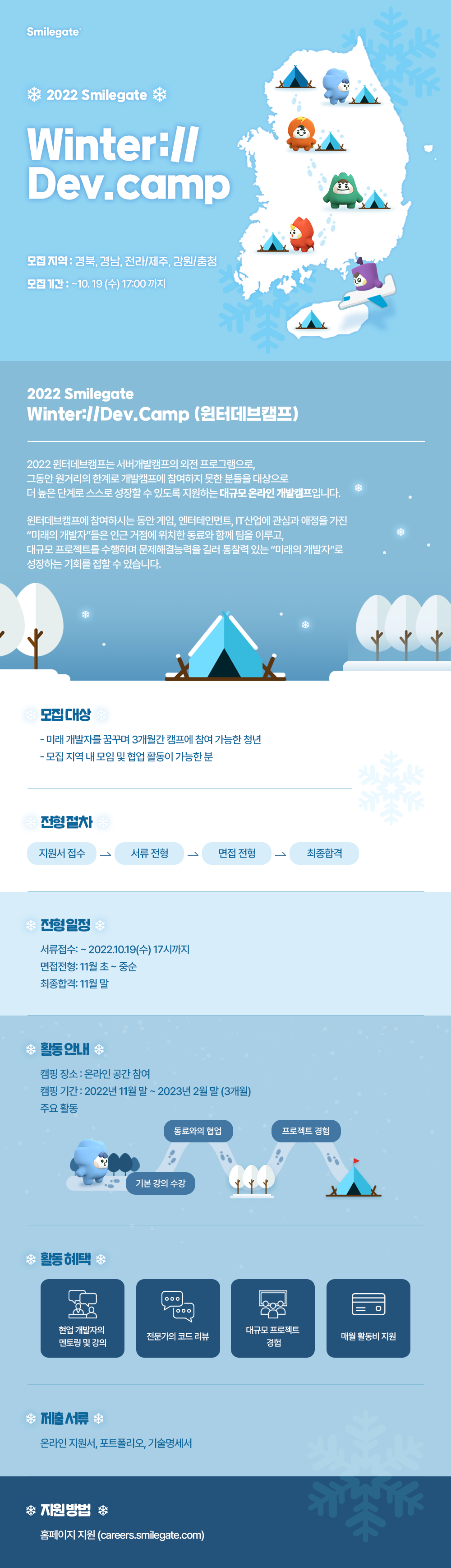 - 채용홈페이지(careers.smilegate.com) 지원서 제출