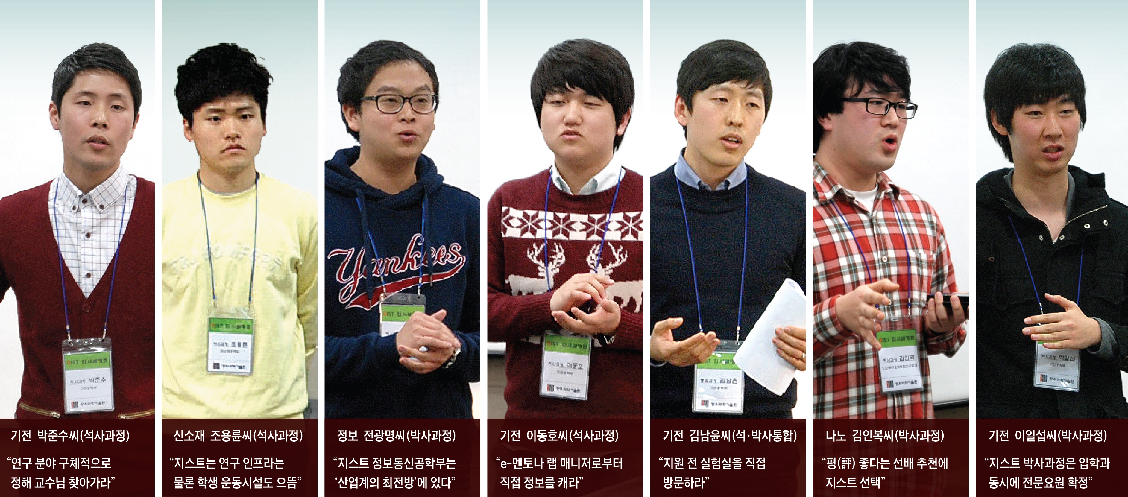 “남학생의 경우 군대 문제가 고민일 겁니다. 지스트 대학원의 가장 좋은 점 중 하나는 박사과정 입학과 동시에 전문요원이 확정되기 때문에 군 문제가 해결된다는 것입니다. 저는 다다음달에 (4주) 훈련만 받으면 다시 돌아와서 연구할 수 있답니다.”