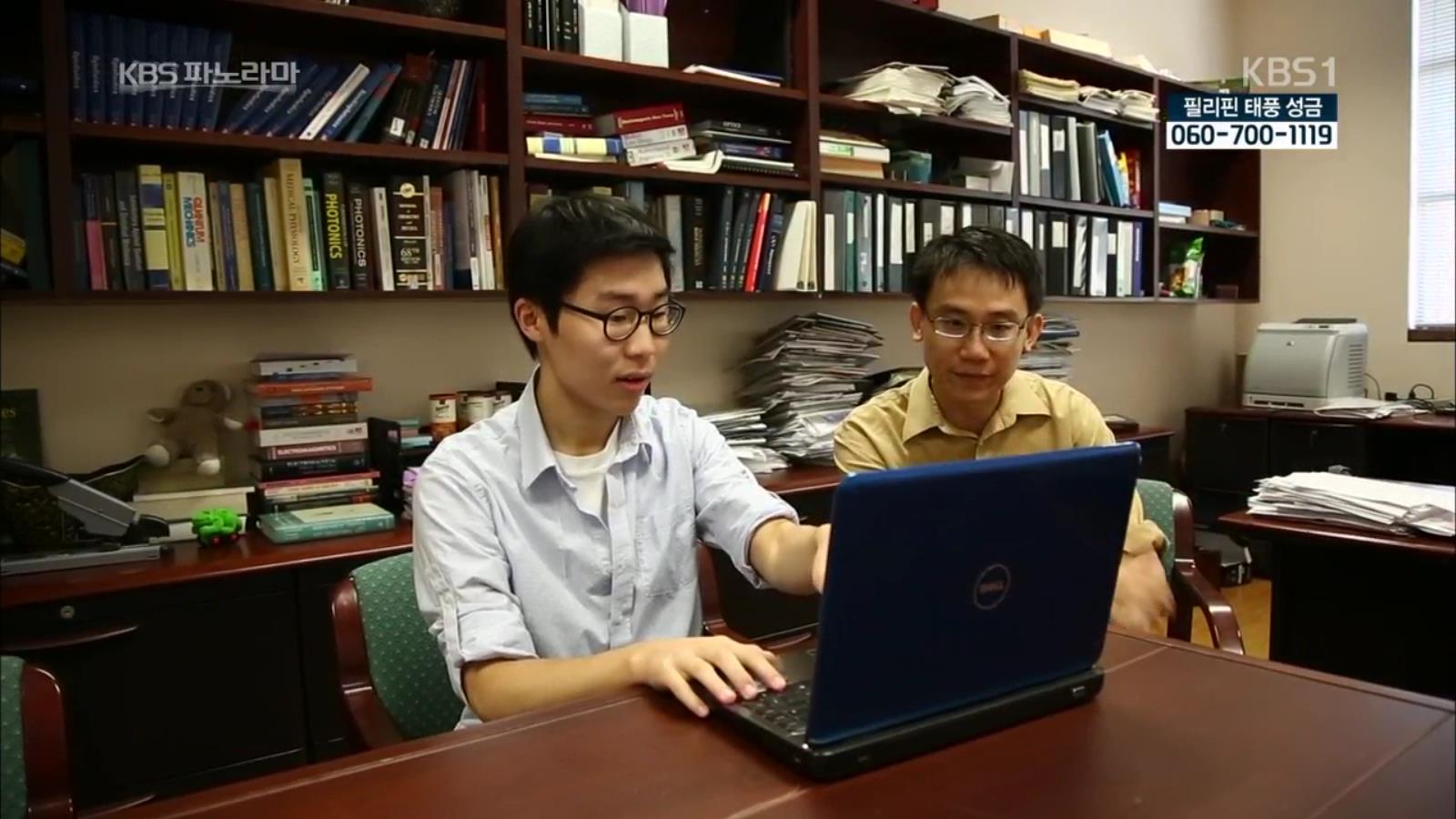지난해 칼텍 SURF에 참가한 류동훈 학생(왼쪽)과 창후에이 양 교수(KBS 파노라마 2013.11.21 방송화면 캡쳐)