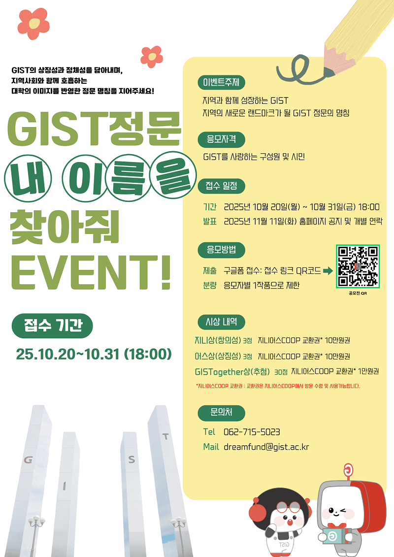 ☆ 이벤트 주제: 지역과 함께 성장하는 GIST, 지역의 새로운 랜드마크가 될 GIST 정문의 명칭