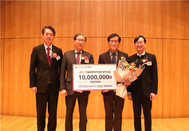 □ 한편, 이날 13기 동문회장인 ㈜인탑스테크닉 심경섭 대표의 발전기금 기탁식도 함께 진행되었다. 심 대표가 기탁한 1,000만 원은 지역과의 협력 및 상생발전을 위해 사용될 예정이다.