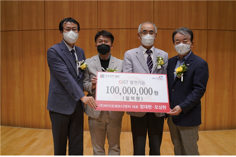∘ 2004년 지스트(GIST·광주과학기술원) 생명과학부에서 박사학위를 받고 이듬해 벤처기업을 창업한 정대현(51) 동문과, 2003년 석사학위를 받은 모상현(48) 동문. 이들이 후배들을 위해 5월 19일(목) 지스트 발전기금으로 1억 원을 기부했다.