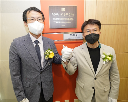 ▲사진2_정대현·모상현 강의실 제막식 (왼쪽부터) 정대현·모상현 바이오에프디엔씨 공동대표