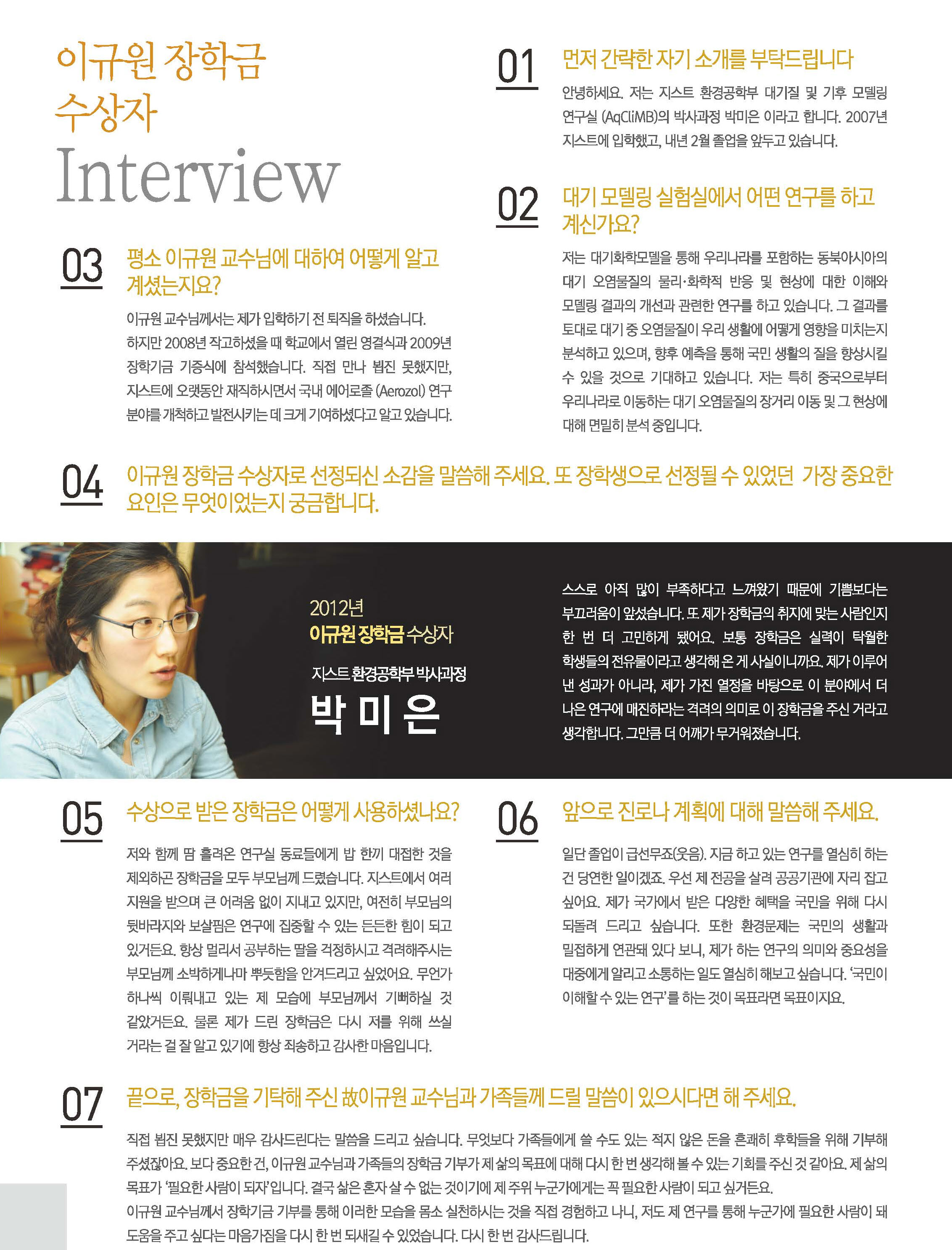 [인터뷰] 2012 이규원 장학금 수상자