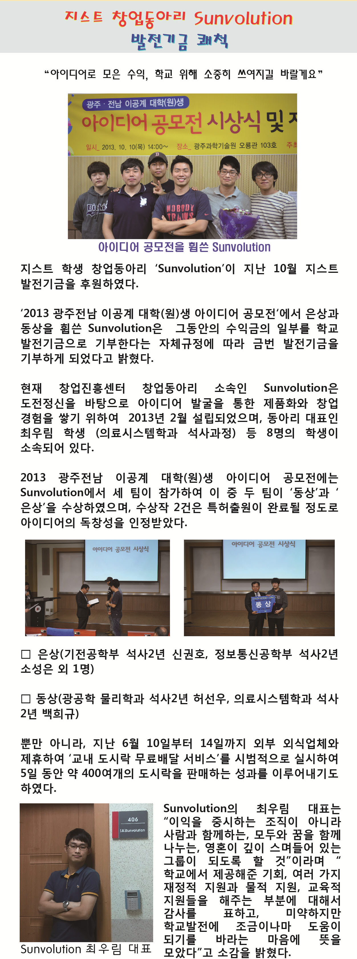 지스트 학생 창업동아리 Sunvolution 발전기금 쾌척
