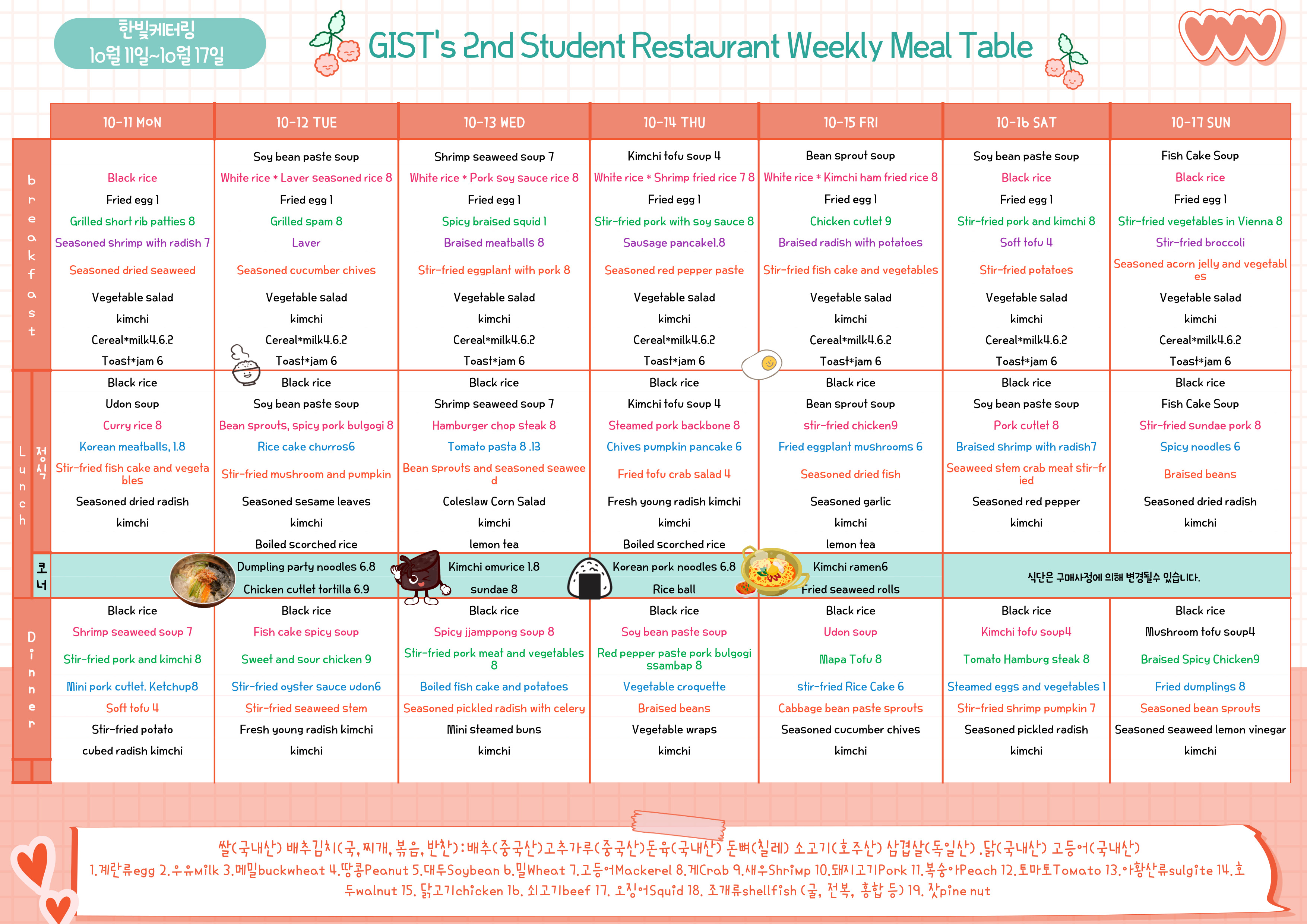 The 2nd Student Restaurant Weekly Meal Table (2021.10.11~2021.10.17)