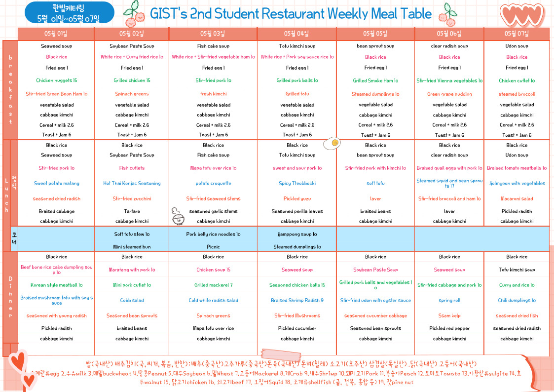The 2nd Student Restaurant Weekly Meal Table (2023.05.01~23.05.07)