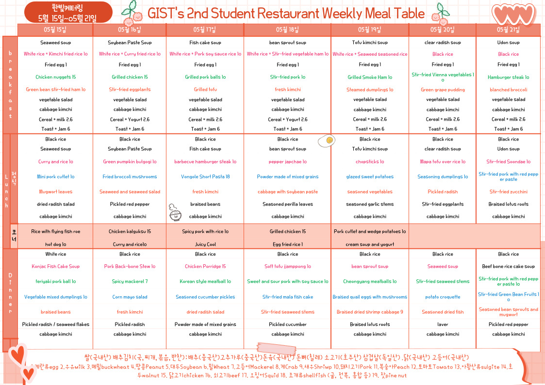 The 2nd Student Restaurant Weekly Meal Table (2023.05.15~23.05.21)