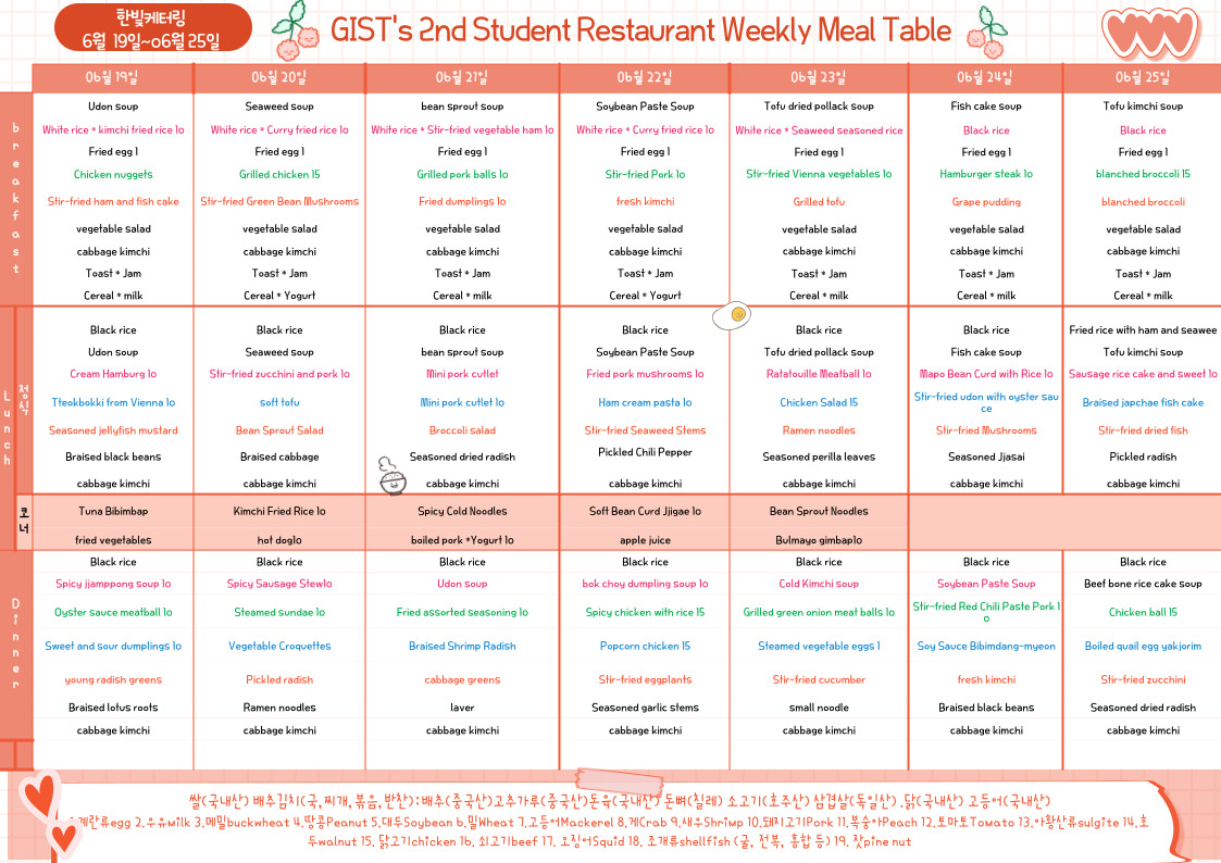 The 2nd Student Restaurant Weekly Meal Table (2023.06.19~23.06.25)