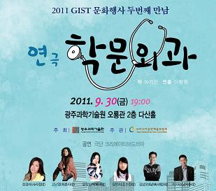 Abundant cultural festivals held by GIST in this autumn evenings, season of abundance. - "Hakmun Waekwa(proctological surgery)" describes "the unspeakable pain" in a humorous way. - Piastra"s performance reinterprets orchestral works into a music of piano. - High-class cultural performance wins hearts of people of Gwangju. In this autumn when every tree bears fruits, GIST holds events of magnificent arts and culture. On Sept. 30, a theater company, Creative Drama(CEO: Hang-won Lee) invited by GIST will stage a play titled "Hakmunwaekwa(proctological surgery)." Also, on Oct. 6, the university invites Pastra(As a compound word of "piano" and "orchestra," Pastra, an ensemble consisting of pianists active in Gwangju and Jeonnam, expresses both delicateness of piano melody and grandiosity of orchestra.), to stage a piano concert under the them of "Art Comes to Meet Science." Hong-kook Kim, director of International and Public Affairs, said that GIST prepares a new genre of cultural event every year. "This year"s event features Jazz orchestra, creative play, and piano concert. the school is preparing a concert of vocal music for the coming winter." He added "I hope people will come and enjoy the cultural events that GIST prepared." Marking its third year, the GIST cultural festival is warmly welcomed by the people of Gwangju, with its small but high quality events suitable for the characteristics of cultural city of Gwangju.