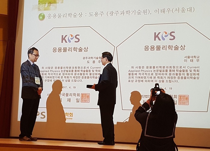 □ Professor Yong-Joo Doh of the GIST Department of Physics and Photon Science has received the Applied Physics Award from the Korean Physical Society. The awards ceremony was held on April 19, 2017, during the Spring Meeting of the Korean Physical Society, which was also the society's 93rd regular general meeting.