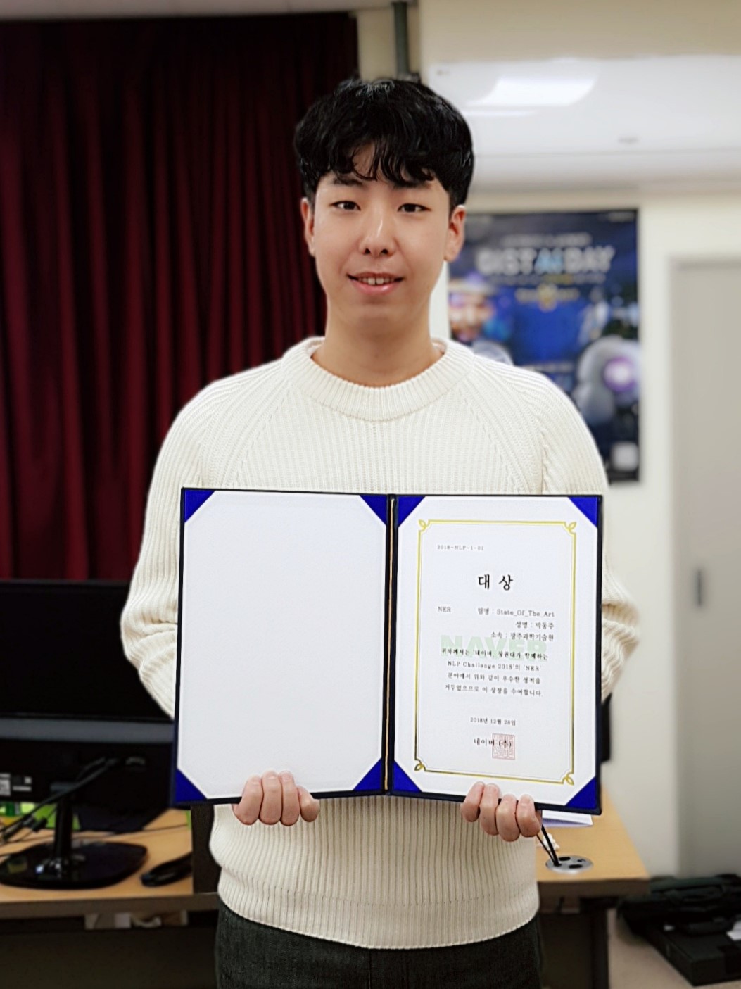 School of Electrical Engineering and Computer Science student Dong-ju Park receives the grand prize in Naver's NLP Challenge Named Entity Recognition