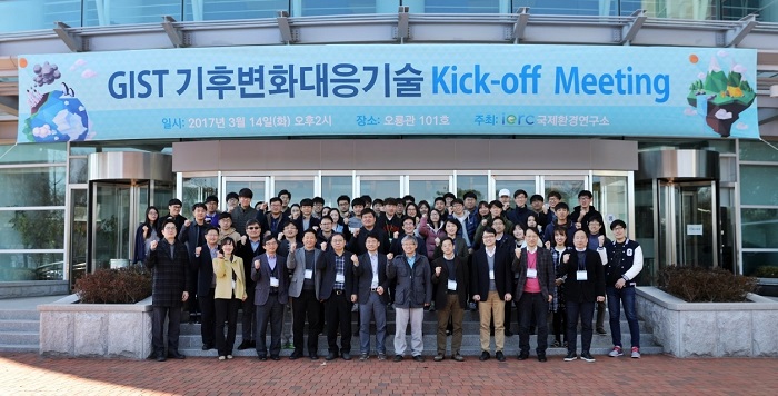 GIST's International Environmental Research Center (Director Joon Ha Kim) held the first kick-off meeting for the Climate Change Response Technology Development Project on March 14, 2017, at Oryong Hall. Approximately 60 participants, including researchers, attended this initial meeting where GIST's vision and goals regarding climate change were announced, including future research plans and initiatives.