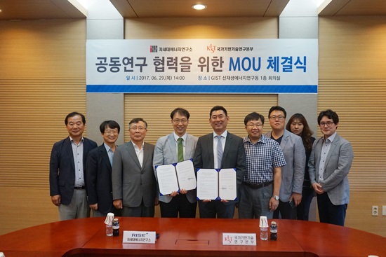 □ The GIST Research Institute for Solar and Sustainable Energies (RISE, Director Jae-Hyung Jang) and KIST National Technology Research Center nation-based technology research center (Director Jong-hee Hwang) signed an MoU for research and educational cooperation at RISE on June 29, 2017.