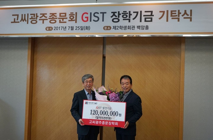 □ The Gwangju Institute of Science and Technology (GIST, President Seung Hyeon Moon) announced that the Gwangju Ko Society has donated 120 million won to the GIST Development Fund to provide scholarships for deserving low-income students.