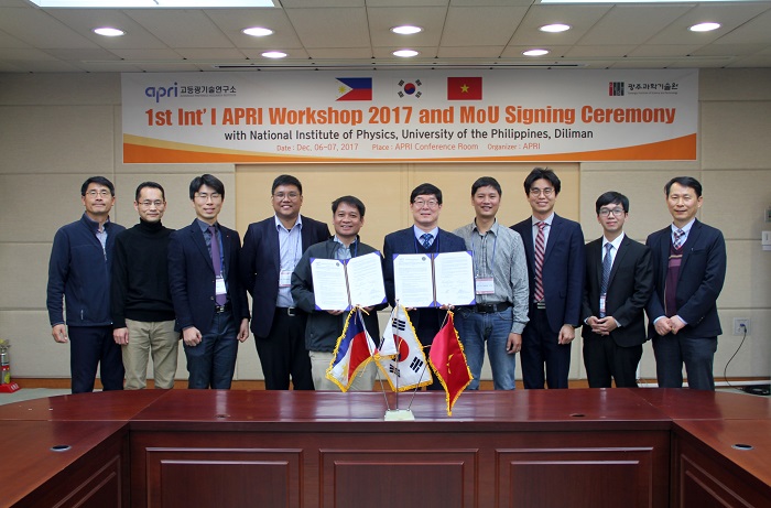 □ The Advanced Photonics Research Institute (APRI, Director Byeong Ha Lee) at the Gwangju Institute of Science and Technology (GIST, President Seung Hyeon Moon) hosted "1st International APRI Workshop 2017 and MoU Signing Ceremony" on December 7, 2017, for collaborative research and personnel exchanges with the National Institute of Physics (NIP, Prof. Arnel Salvador) of the University of the Philippines.
