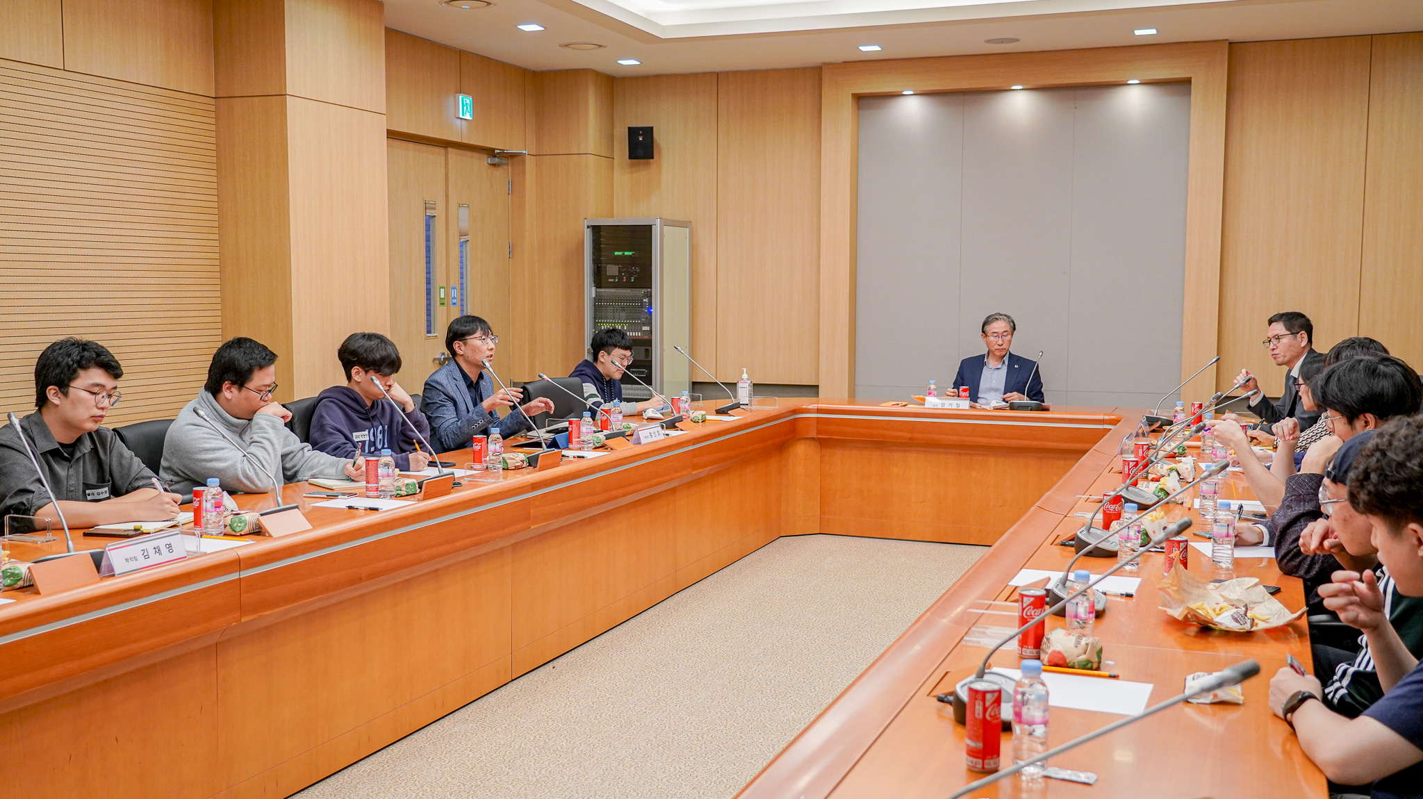 GIST President Kichul Lim holds a hamburger meeting with a delegation of student researchers... Utilizing the integrated management system, promising stable payment of student labor costs next year