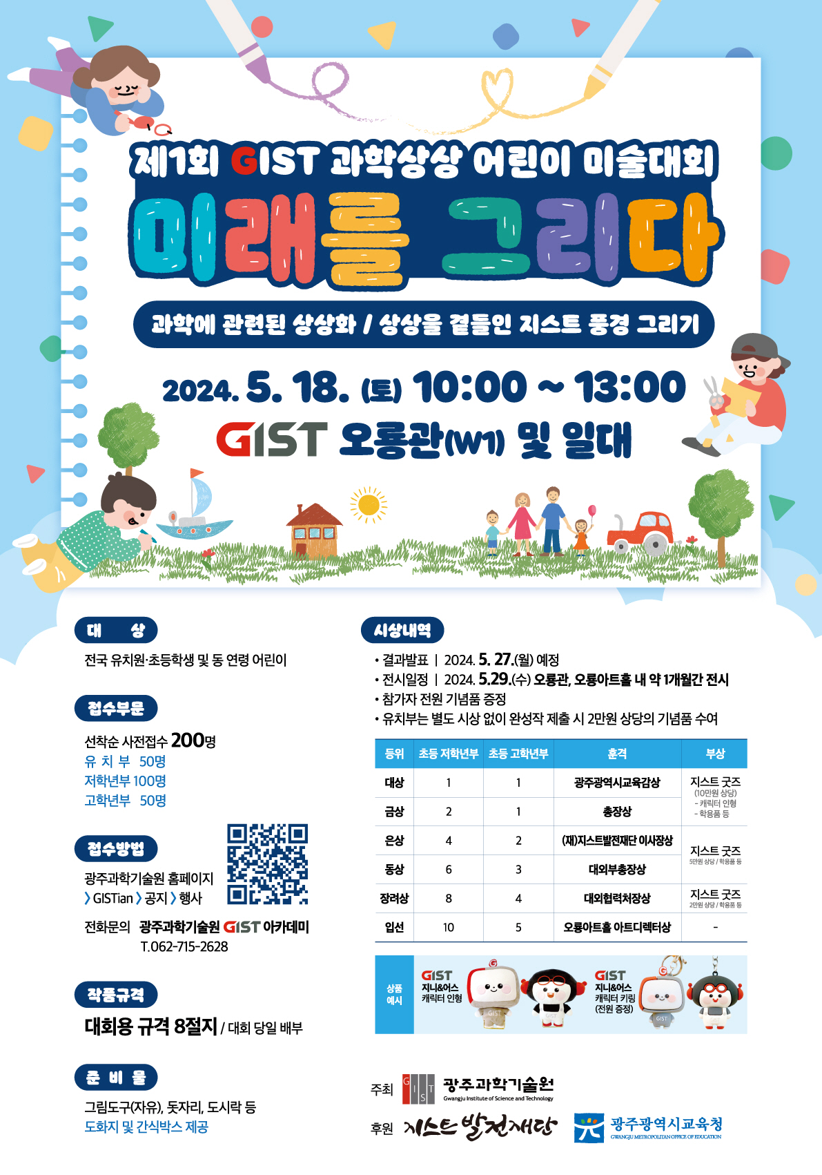 The 1st GIST Science Imagination Children’s Art Contest will be held on Saturday, May 18th on GIST campus... Application accepted for 200 kindergarten and elementary school students
