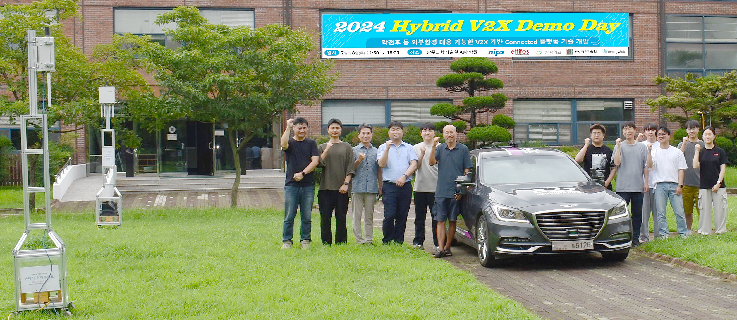 "Search for autonomous vehicle location and change traffic lights, call an ambulance when a patient emergency occurs" GIST holds 'Hybrid V2X Demo Day' to demonstrate the development of a connected car platform