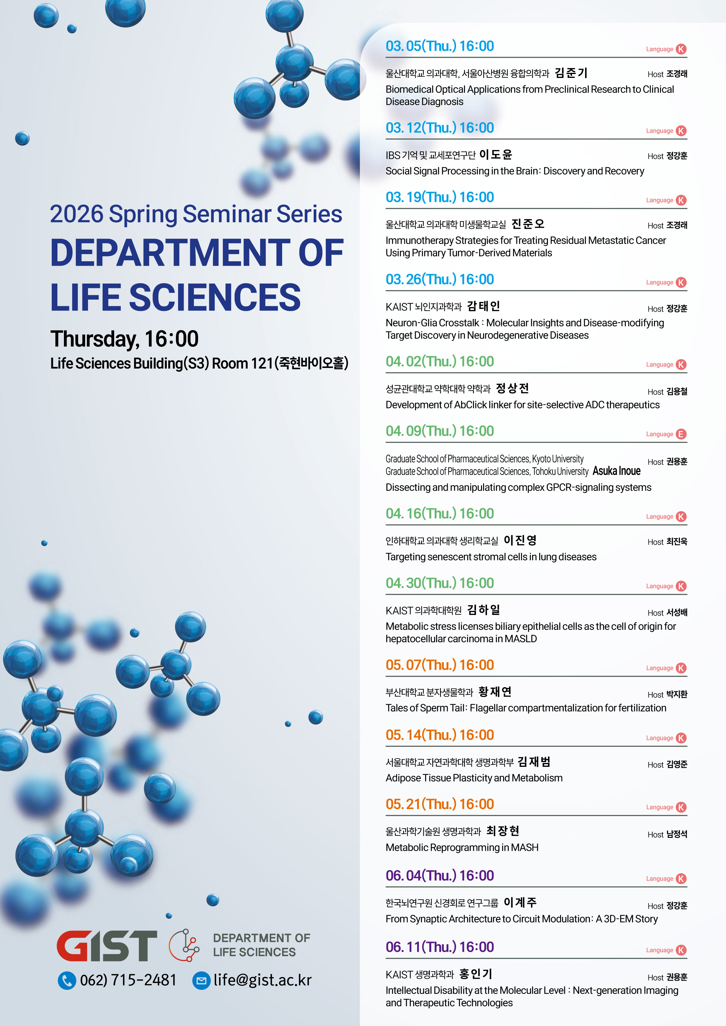 * 문의처: 생명과학과 학과실 062)715-2481 | life@gist.ac.kr