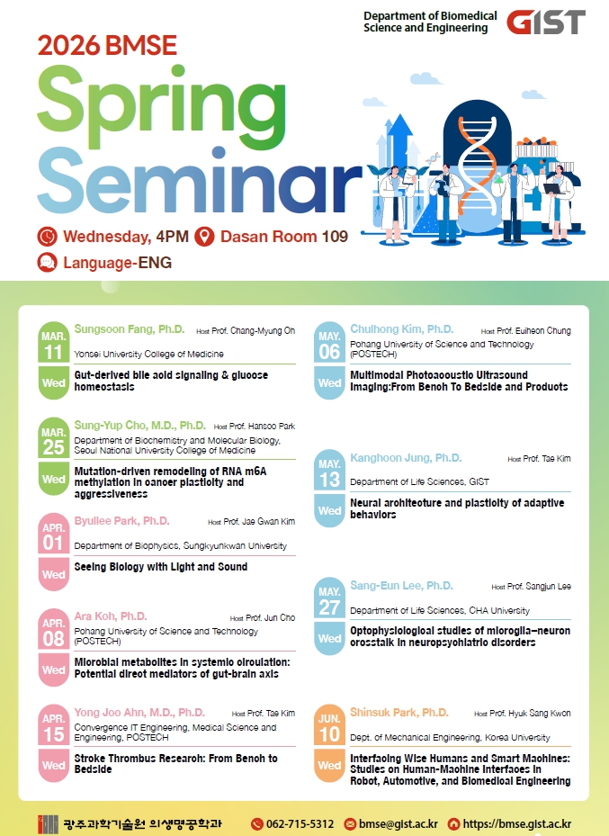 * 문의: 의생명공학과 학과실 062-715-5312, bmse@gist.ac.kr