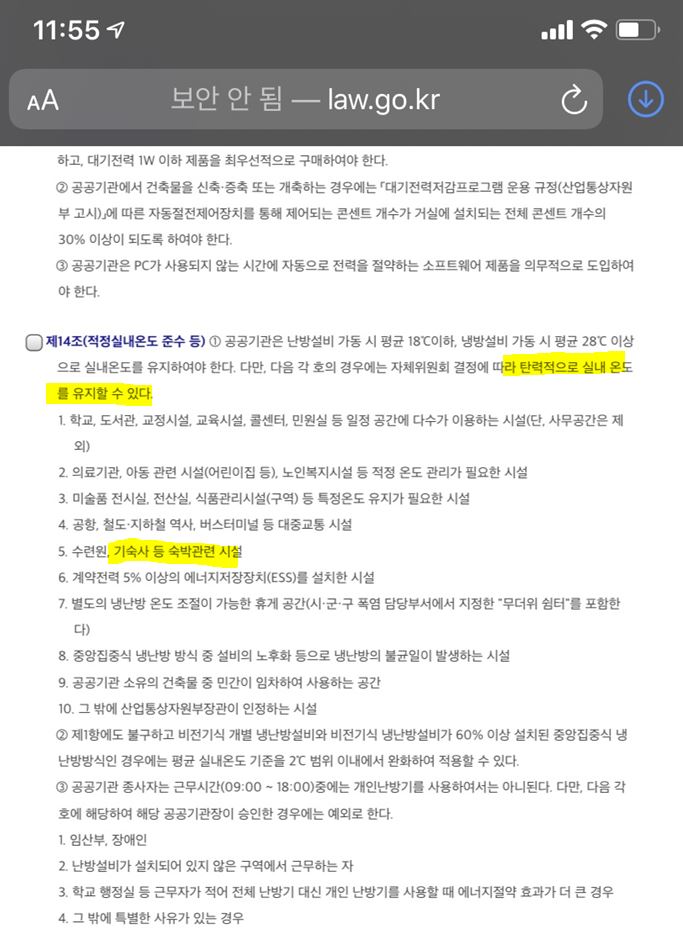 덧붙여서 공공기관에 대한 정부정책때문에 온도를 제한할 수밖에 없다고 하셨습니다.
